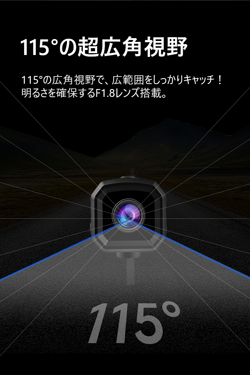 ** 115°超広角レンズ + F1.8大口径**